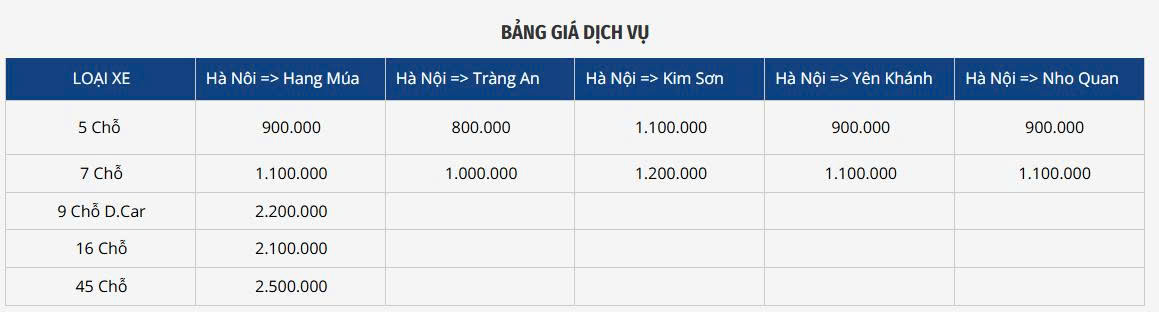 Dịch vụ thuê xe Hà Nội – Ninh Bình Ngày đăng: 9 Tháng 9, 2023 0 lượt xem Các bài viết khác: Dịch vụ Thuê xe 5 chỗ – 7 chỗ(0 lượt xem) Dịch vụ thuê xe Hà Nội – Hạ Long(0 lượt xem) Dịch vụ thuê xe Hà Nội – Ninh Bình(0 lượt xem) Bài viết cùng chủ đề: Dịch vụ thuê xe Hà Nội – Hạ Long Dịch vụ Thuê xe 5 chỗ – 7 chỗ